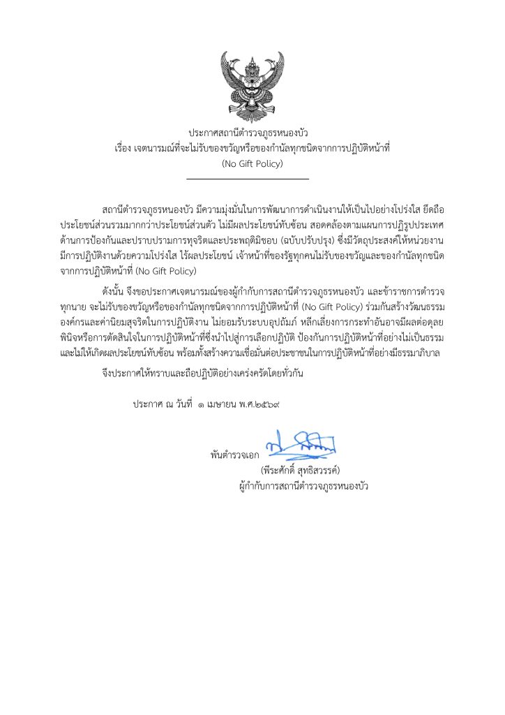วันที่ 13 เมษายน 2569 เวลา 15.00 น. พ.ต.อ.พีระศักดิ์ สุทธิสวรรค์ผกก.สภ.หนองบัวพ.ต.ท.สุทัศน์ บัวทิมรอ