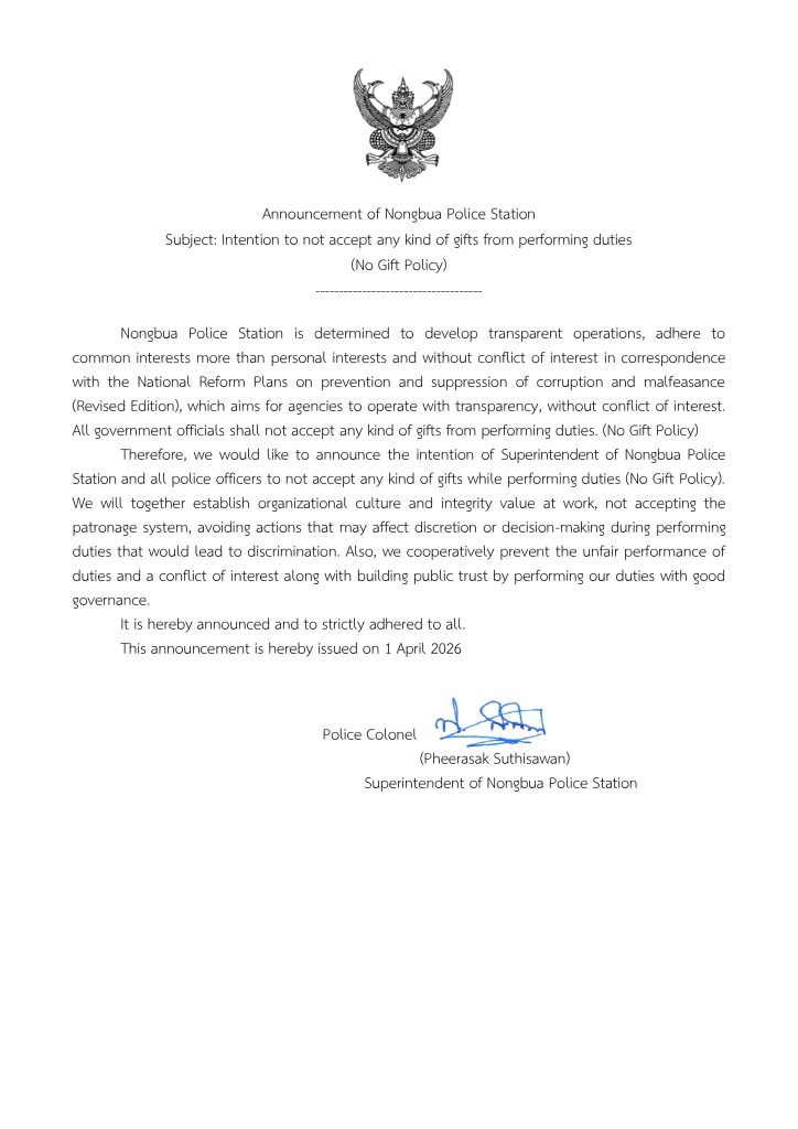 ️วันที่ 13 เมษายน 2569เวลา 10.30 น. พ.ต.อ.พีระศักดิ์ สุทธิสวรรค์ผกก.สภ.หนองบัวพ.ต.ท.สุทัศน์ บัวทิมรอ