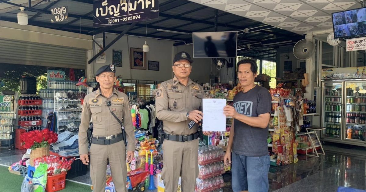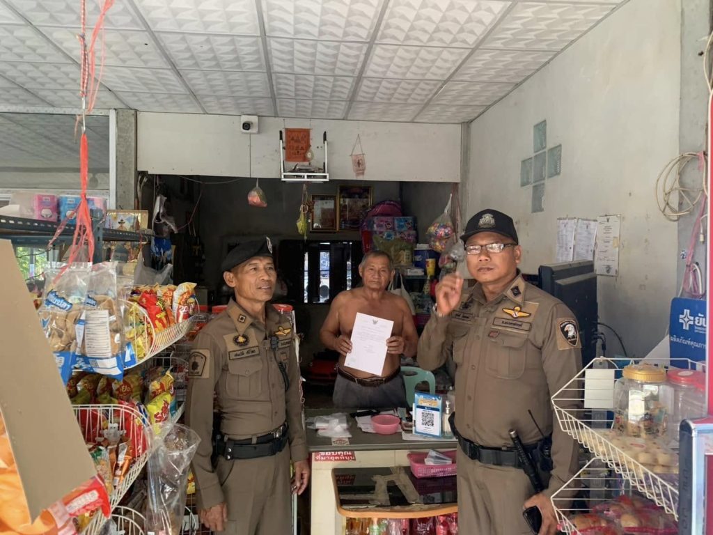 พร้อมด้วย สายตรวจรถยนต์ ว.4 ประชาสัมพันธ์ขอความร่วมมืองดจำหน่ายสุราหรือเครื่องดื่มแอลกอฮอล์