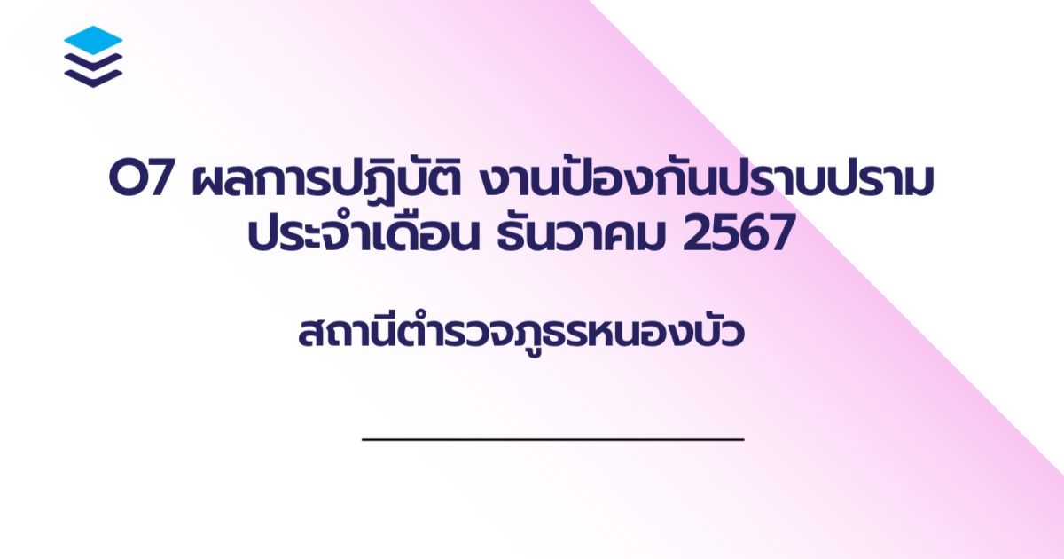 รายงานผลการปฏิบัติงานป้องกันปราบปราม เดือน ธันวาคม 2567