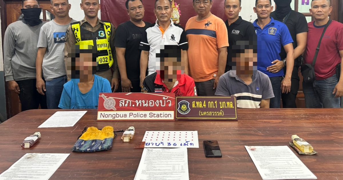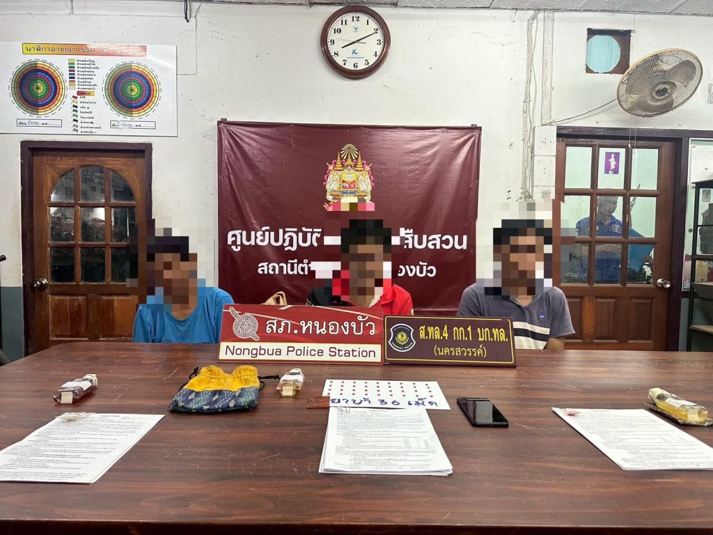 เจ้าหน้าที่ตำรวจผู้จับกุม สภ.หนองบัว ร่วมกับเจ้าหน้าที่ตำรวจ ส.ทล.4 กก.1 บก.ทล.(นครสวรรค์) ร่วมกันจับกุมผู้ต้องหาคดียาเสพติด จำนวน 3 ราย