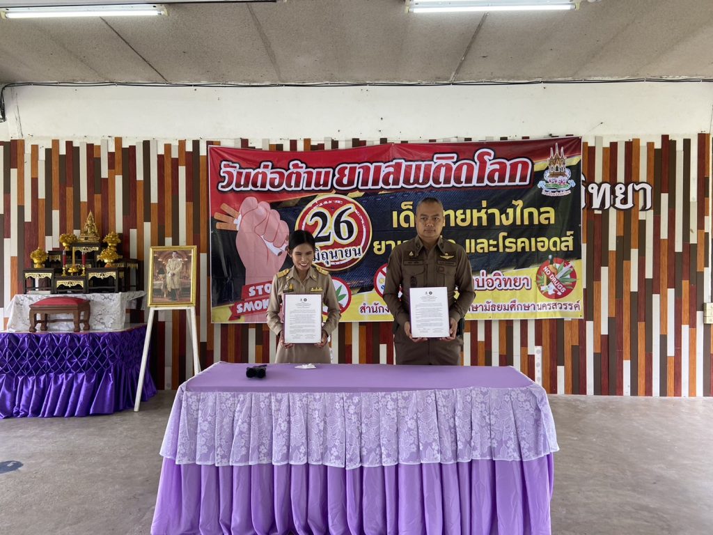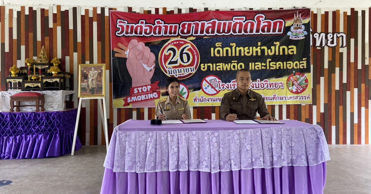 วันที่ 15 มิ.ย.66 เวลา 14.00 น. พ.ต.อ.เดชา ศรีชัย ผกก.สภ.หนองบัว พร้อมเจ้าหน้าที่ตำรวจ ร่วมลงนาม MOU ระหว่างสถานีตำรวจภูธรหนองบัว และโรงเรียนวังบ่อวิทยา ตามโครงการเด็กไทยห่างไกลยาเสพติด และโรคเอดส์ พร้อมประชาสัมพันธ์ ให้ความรู้แก่ครูและนักเรียน ดังนี้