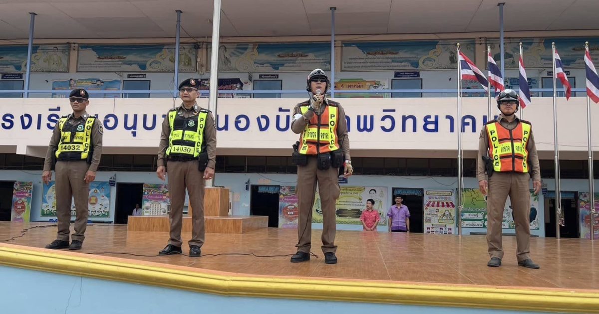 ให้ความรู้เกี่ยวกับการจอดรถที่ถูกวิธีให้ชิดขอบทางด้านซ้ายและการขับขี่ปลอดภัยสวมหมวกนิรภัย ณ โรงเรียนอนุบาลหนองบัว