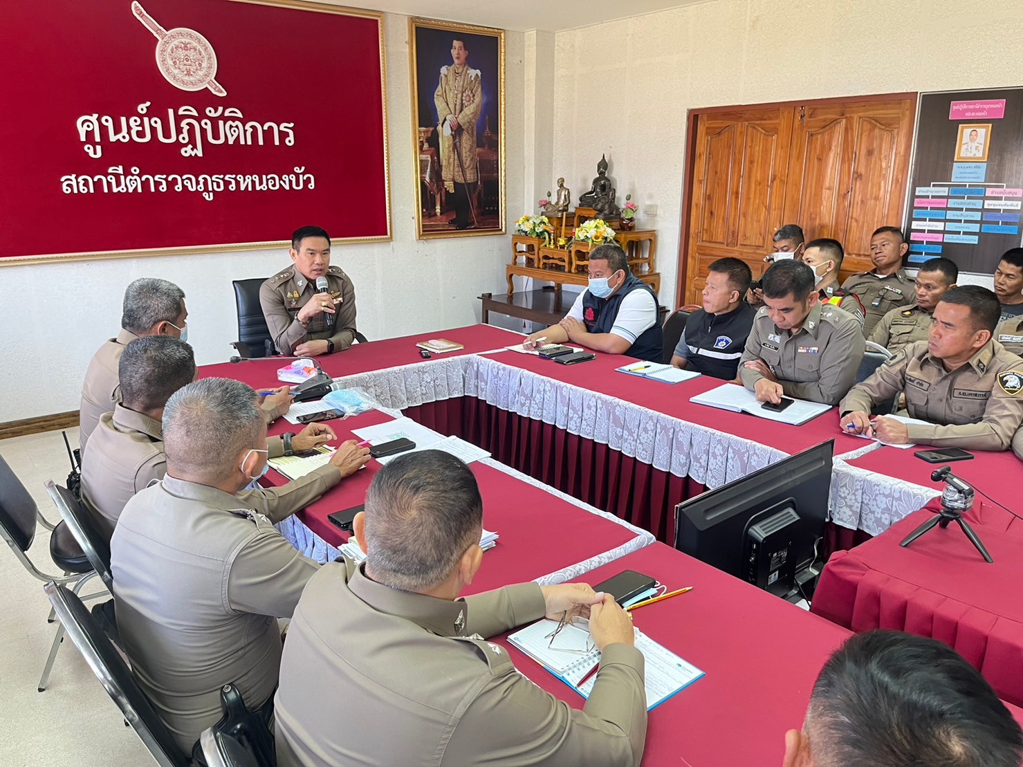 วันที่ 13 ธ.ค.66 เวลา 10.00 น. พ.ต.อ.พีระศักดิ์ สุทธิสวรรค์ ผกก.สภ.หนองบัว เป็นประธานการประชุมบริหาร