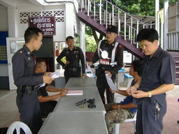 พ.ต.ท.พิทยา ทับทิมไทย รอง ผกก.ปป.ฯ เปิด โครงการ ๑ ตำรวจ ๑๐ จยย.รับจ้าง ๒๗ พ.ค. ๒๕๕๒ |