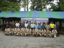 พ.ต.ท.สมเชื้อ ธรรมบัวชา สวป.สภ.หนองบัว พร้อมชุดปฏิบัติการชุมชนสัมพันธ์ ร่วมกิจกรรมกับองค์การบริหารส่วนตำบลหนองกลับ หัวหน้าส่วนราชการ พ่อค้าประชาชน นักเรียน เกษตรกรใน โครงการสนับสนุนดำเนินการอันเนื่องมาจากพระราชดำริเทือกเขาพระการปลูกหญ้าแฝกคลองสมอ ประชาชนเข้าร่วมกิจกรรมทั้งหมดประมาณ ๗๐๐ คน ๑๕ ก.ค. ๒๕๕๒ |