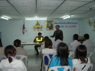พ.ต.ท.สมเชื้อ ธรรมบัวชา สวป.สภ.หนองบัว พร้อมสายตรวจจราจร ให้ความรู้แก่ผู้เข้าอบรมฯ "โครงการจับไม่ปรับแต่ให้กลับมาอบรม" ๑๖ ก.ย. ๒๕๕๒ |