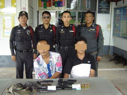 | ร.ต.ท.เกรียงศักดิ์ วัฒนสุข รองสวป.สภ.หนองบัว พร้อมชุดตั้งจุดตรวจตำบลหนองกลับ ร่วมกันจับกุมอาวุธ ปืน ผู้ต้องหา ๒ คนของกลาง อาวุธปืนขนาด .๓๕๗ จำนวน ๑ กระบอก, เครื่องกระสุนปืน ๒๙ นัด และ อาวุธปืนขนาด ๙ จำนวน ๑ กระบอก เครื่องกระสุนปืน ๔๑ นัด เหตเกิด ๑๖ พ.ค. ๒๕๕๓ |