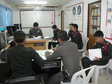 พ.ต.อ.สำเริง งามรัตน์ ผกก.สภ.หนองบัว พ.ต.ท.เกียรติศักดิ์ ขอนพุดซา รอง ผกก.ป.ฯ พร้อมข้าราชการตำรวจ สภ.หนองบัวซักซ้อมแผนเผชิญเหตุ การปล้นสถาบันการเงินโดยเน้นการป้องกัน |