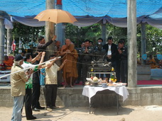 เจ้าคุณพระเทพสารเวที เลขาสมเด็จพระสังฆราชสกลมหาสังฆปริณายก ประธานฝ่ายสงฆ์ พล.ต.ต.ชฎิล พรหมไพบูลย์ ผบก.ภ.จว.นครสวรรค์ ประธานฝ่ายฆารวาส ร่วมพิธีเททองหล่อพระประธาน วัดหนองม่วง ต.หนองกลับ อ.หนองบัวฯ มีข้าราชการตำรวจและประชาชนจำนวนมากเข้าร่วมพิธี วันที่ ๑๔ เม.ย. ๒๕๕๔ |