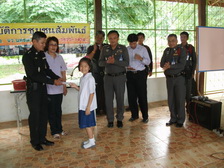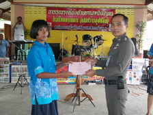 พ.ต.ท.เกียรติศักดิ์ ขอนพุดซา รอง ผกก.ป.สภ.หนองบัว , พ.ต.ท.สมพิศ ผาสุขศาสตร์ สวป.ฯ ร.ต.ต.สุริยะ อาจศิริ รอง สวป.ฯ พร้อมชุดชุมชนสัมพันธ์ สายตรวจตำบลทุ่งทอง ให้ความรู้เรื่องกฎหมายจราจจร มอบทุนแก่นักเรียนที่เรียนดี พร้อมเลี้ยงอาหารกลางวันเด็กนักเรียนโรงเรียนบ้านไทรงาม ม.๓ ต.ทุ่งทอง อ.หนองบัว จว.นครสวรรค์ วันที่ ๒๓ มิ.ย. ๒๕๕๔ |