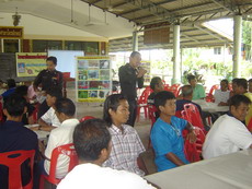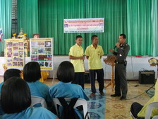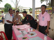 ร.ต.ต.สุริยะ อาจศิริ รอง สวป.ฯ พร้อมชุดชุมชนสัมพันธ์ ออกให้บริการประชาชนร่วมอำเภอหนองบัว ตามโครงการ"โรงพักเคลื่อนที่ให้บริการประชาชน" ให้ความรู้ด้านการป้องกันภัยให้สังคม กฎหมายจราจร การรณรงค์สวมหมวกนิรภัย ๑๐๐ % แจกเอกสาร และรับแจ้งเอกสารหาย ณ ร.ร.บ้านธารทหาร(แสงสว่างอุปถัมป์) ม.๒ ต.ธารทหาร อ.หนองบัว จว.นครสวรรค์ วันที่ ๒๐ ก.ย. ๒๕๕๔ |