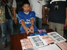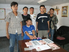 ฐานความผิด ร่วมกันมียาเสพติดให้โทษประเภท๑(ยาบ้า)ไว้ในความครอบครองเพื่อจำหน่ายและจำหน่ายโดยผิดกฎหมาย ของกลาง ยาบ้าจาการล่อซื้อ ๒ เม็ด ยาบ้า ในกระเป๋าผู้ต้องหา ๑๒ เม็ด เงินสด ๖๐๐ บาท ,ภาพถ่ายธนบัตรจากการล่อซื้อ จำนวน ๒ แผ่น , โทรศัพท์เคลื่อนที่ ๑ เครื่อง , รถยนต์กระบะโตโยต้า ๑ คัน สถานที่เกิดเหตุ ถนนสายหนองบัว-ท่าตะโก(สายเก่า) ม.๕ ต.ธารทหาร อ.หนองบัว จว.นครสวรรค์ วันที่ ๓๐ พ.ย. ๒๕๕๔ เวลา ๑๕.๔๐ น. |