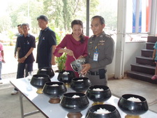 ประจำศูนย์ปฏิบัติการ สภ.หนองบัวโดยมี พ.ต.อ.สำเริง งามรัตน์ ผกก.สภ.หนองบัว และข้าราชการตำรวจรับมอบ วันที่ ๒๙ ต.ค. ๒๕๕๕ |