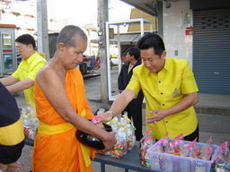 | พ.ต.อ.เผ่าพงศ์ พูราษฎร์ ผกก.สภ.หนองบัว พร้อมข้าราชการตำรวจ และพ่อค้า ประชาชน ร่วม พิธีทำบุญตักบาตรข้าวสารอาหารแห้งหน้าตลาด เนื่องในโอกาสมหามงคลเฉลิมพระชนมพรรษา 5 ธันวาคม 2551 |