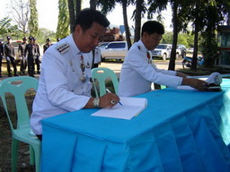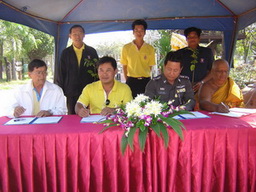 | พิธีลงนาม MUO กัน 4 หน่วยงาน มีเจ้าคณะอำเภอหนองบัว, ผกก.สภ.หนองบัีว,หน.โครงการอันเนื่อง มาจากพระราชดำริ , ผอ.ร.ร.อนุบาลหนองบัว |