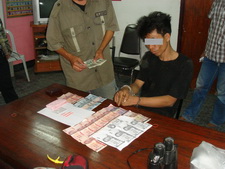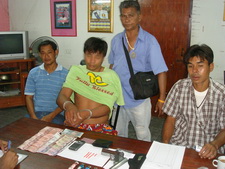พ.ต.ท.บุญเกื้อ จุลรอด สว.สส.ฯ ร.ต.ท.สมบัติ จันทิมี รอง สว.สสฯ พร้อมกำลังชุดสืบสวน ได้ีร่วมกันจับ กุมตัว นายณรงค์ มาตรสิงห์ อายุ ๓๕ ปี โดยกล่าวหาว่า"มียาเสพติดประเภท ๑ ไว้ในความครอบครอง เพื่อจำหน่ายและจำหน่ายโดยผิดกฎหมาย" (ยาบ้า)ของกลาง ๑.ยาบ้าจำนวน ๑๐ เม็ด(ล่อซื้อ) ๒.ยาบ้า จำนวน ๑๔ เม็ด ๓.ภาพถ่ายธนบัตรล่อซื้อ ๑ ฉบับ ๔.โทรศัพท์มือถือ ๑ เครื่อง ๕.รถจักรยานยนต์ ๑ คัน เหตุเกิด ทางเข้าบ้านห้วยธารทหาร ม.๓ ต.วังบ่อ อ.หนองบัวฯ เวลาประมาณ ๑๔.๑๐ น.วันที่ ๒๒ ก.พ. ๒๕๕๔ |