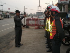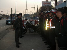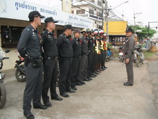 พ.ต.อ.สำเริง งามรัตน์ ผกก.สภ.หนองบัว ประชุมอบรมปล่อยแถวสายตรวจก่อนออกปฏิบัติหน้าที่ หน้าศูนย์จราจร ๒๑ ก.พ. ๒๕๕๔ |