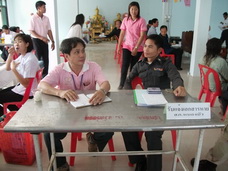 พ.ต.อ.สำเริง งามรัตน์ ผกก.สภ.หนองบัว , พ.ต.ท.เกียรติศักดิ์ ขอนพุดซา รอง ผกก.ป.ฯ พ.ต.ท.เตโชทัย รื่นรมย์ สวป.ฯ ร.ต.ท.ชัยวัฒน์ ทิพยโสตถิ รอง สวป.ฯ พร้อมด้วยข้าราชการตำรวจชุดชุมชนสัมพันธ์ และสายตรวจตำบลหนองบัว ของ สภ.หนองบัว ร่วมออกบริการร่วม"โครงการอำเภอเคลื่อนที่" ณ วัดร่องดู่ ม.๑๓ อ.หนองบัว จว.นครสวรรค์ ๒๒ ก.พ. ๒๕๕๔ |