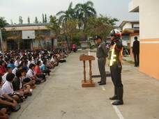 พ.ต.อ.สำเริง งามรัตน์ ผกก.สภ.หนองบัว , พ.ต.ท.เกียรติศักดิ์ ขอนพุดซา รอง ผกก.ป.ฯ พ.ต.ท.สมพิศ ผาสุขศาสตร์ สวป.ฯ พร้อมด้วยข้าราชการตำรวจชุมชนสัมพันธ์ จราจร ของ สภ.หนองบัว ประชาสัมพันธ์ "โครงการครู ๑๐ นาที " ให้ความรู้กฎหมายจราจร การขับรถสวมหมวกนิรภัย ณ โรงเรียนหนองบัว อ.หนองบัว จว.นครสวรรค์ ๒๒ ก.พ. ๒๕๕๔ |